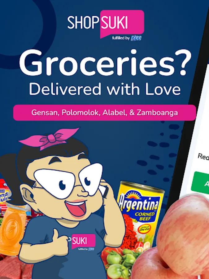 Shop Suki is Mindanao’s premier online grocery store serving Alabel, General Santos, Polomolok, Koronadal and Zamboanga city. With over 20,000+ products to choose from: fresh fruits, vegetables, meats and seafoods, dry groceries, beverages, pharmacy items to department store essentials. We guarantee that each order is well-packed, freshly sealed and delivered with love.