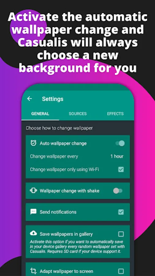 - Activate the automatic wallpaper change and Casualis will always choose a new background for you