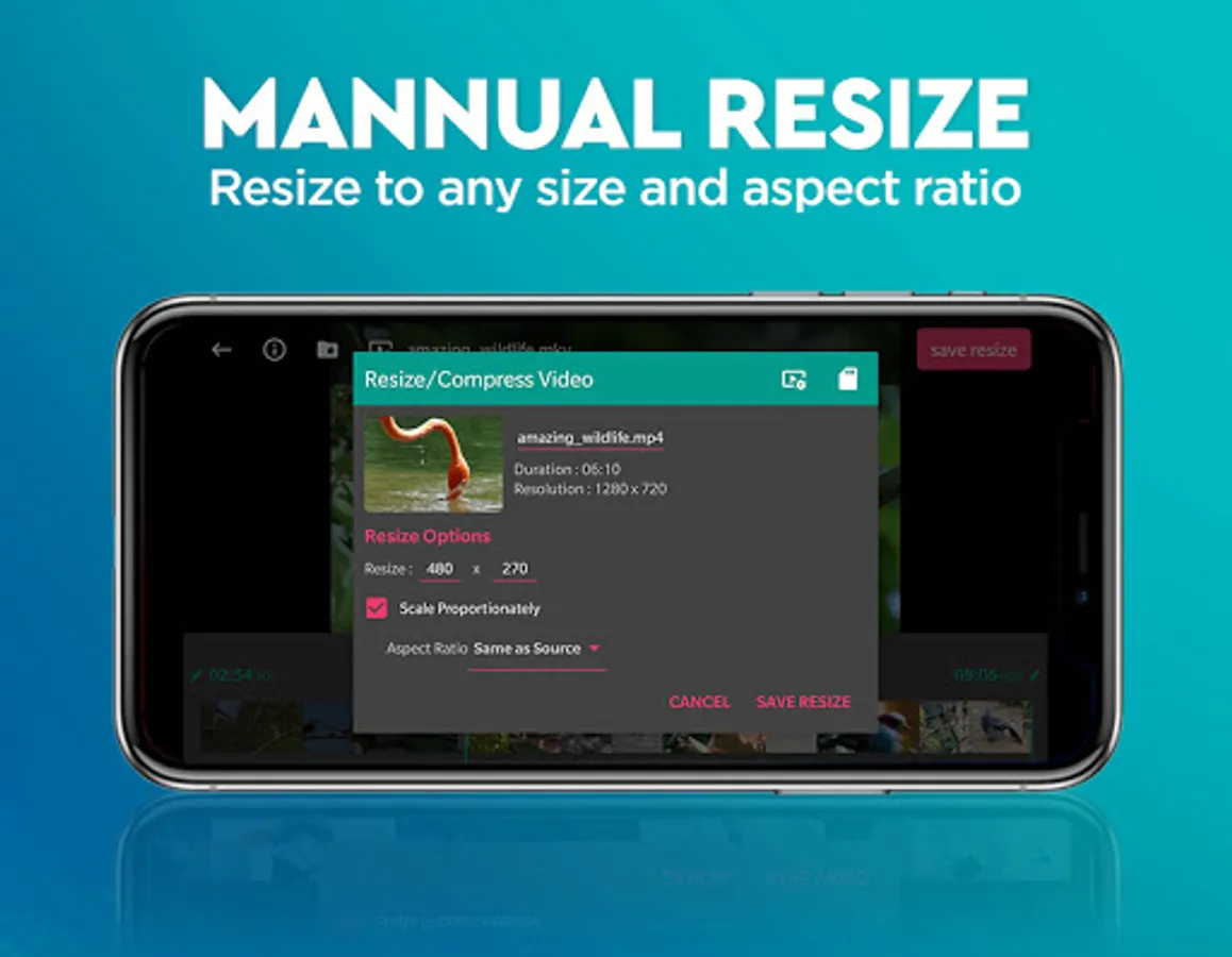- Ability to resize videos to any given size with a beautiful translucent blurry background as padding