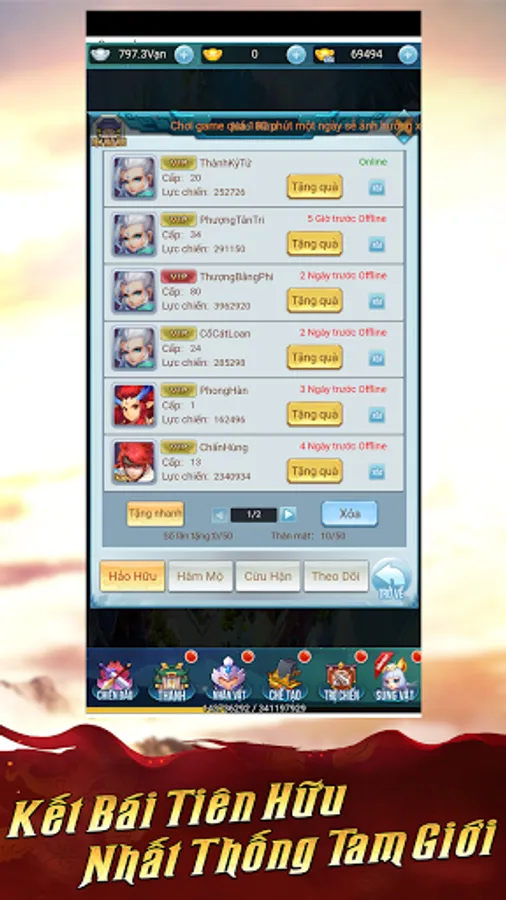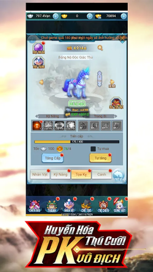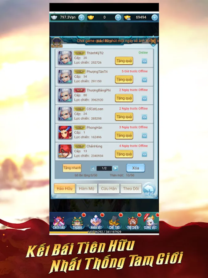 - Great PK system from boss hunting, Ho Tong Tay Du, Cuu Trung Thien, Bang Hoi Chien, Ba Lien Server War.