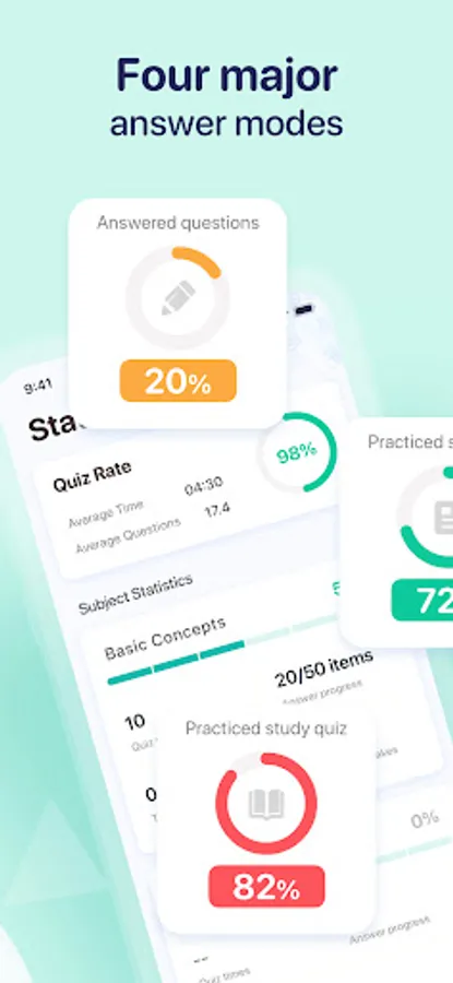 - Specialized practice by content area, with the flexibility to switch between them at any time