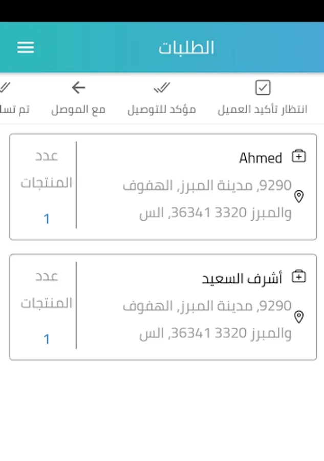 يصل إليك اشعار عند وجود طلب جديد من أحد العملاء