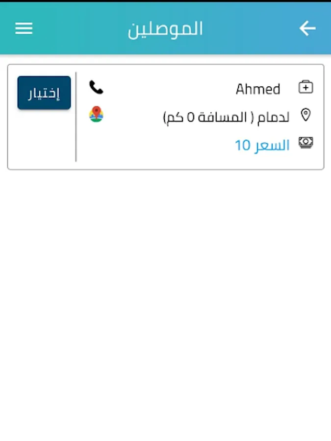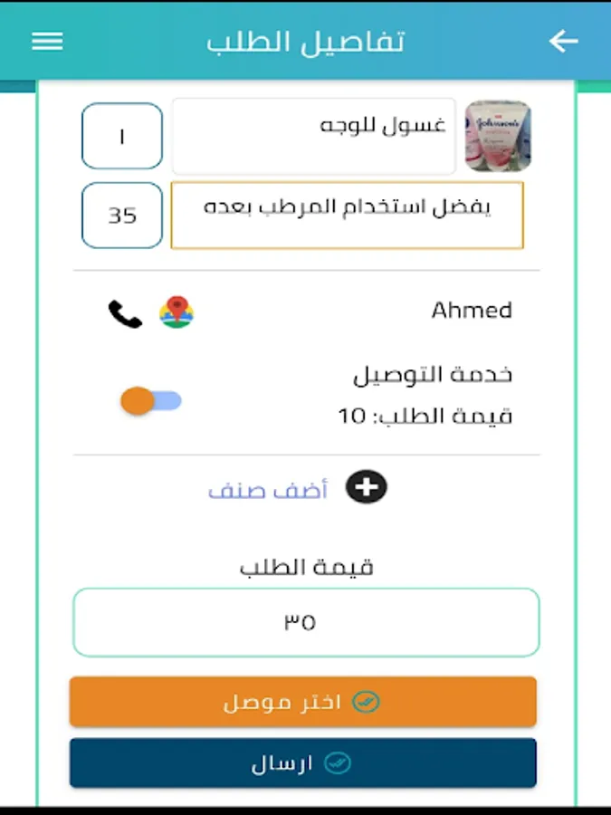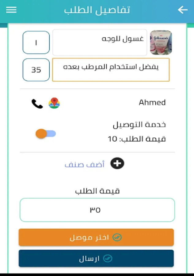 في حاله طلب العميل خدمه التوصيل إلى المنزل إختار أحد السائقين المتاحين