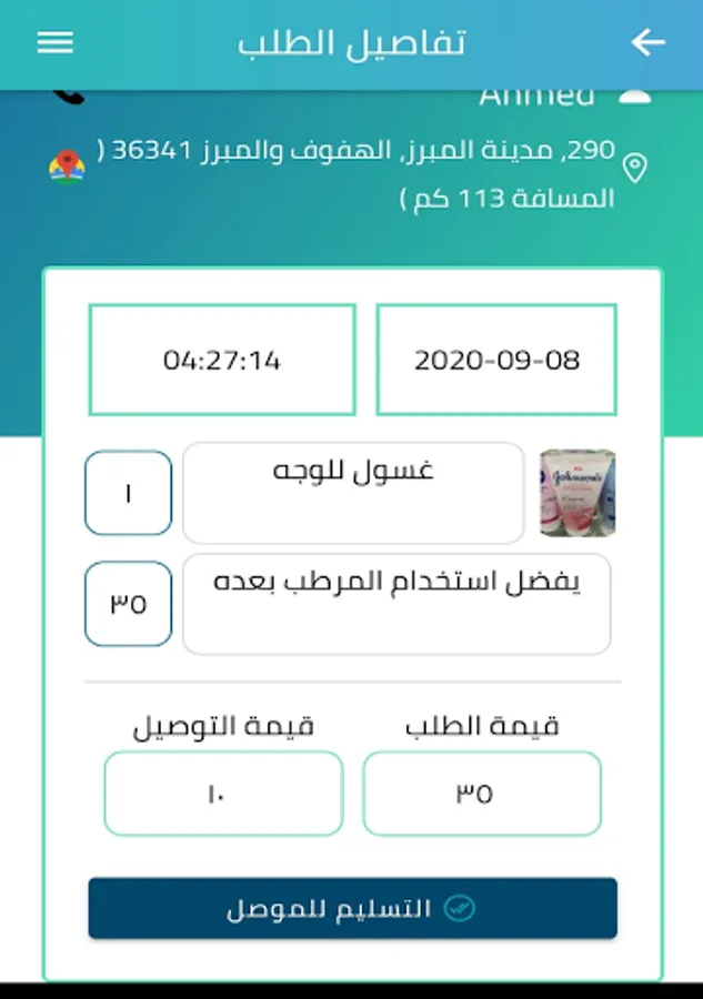 بعد تأكيد العميل على الطلب جهز الطلب لحين وصول العميل لاستلام طلبه او وصول السائق لاستلام الطلب وتوصيله للعميل.