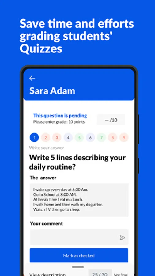 - Teachers create tests and quizzes and let students solve them online and get scores instantly.