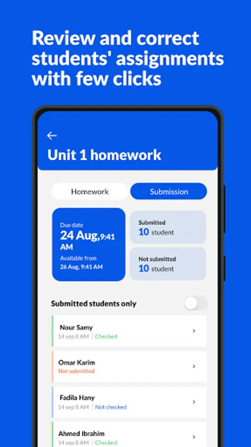 - Teachers create assignments and send them to students simply through the system.