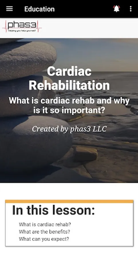 Education is one of the three core components of heart recovery. teleHeart helps you by providing short, easy to understand lessons paired with simple quizzes that allow you to understand and manage your condition.