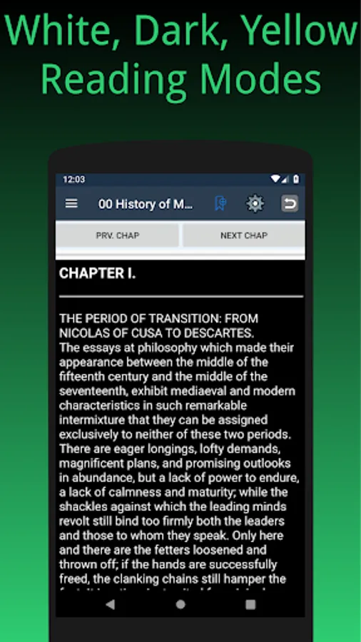 There are White, Dark (night), and Yellow Pages modes/themes for you to read with ease.