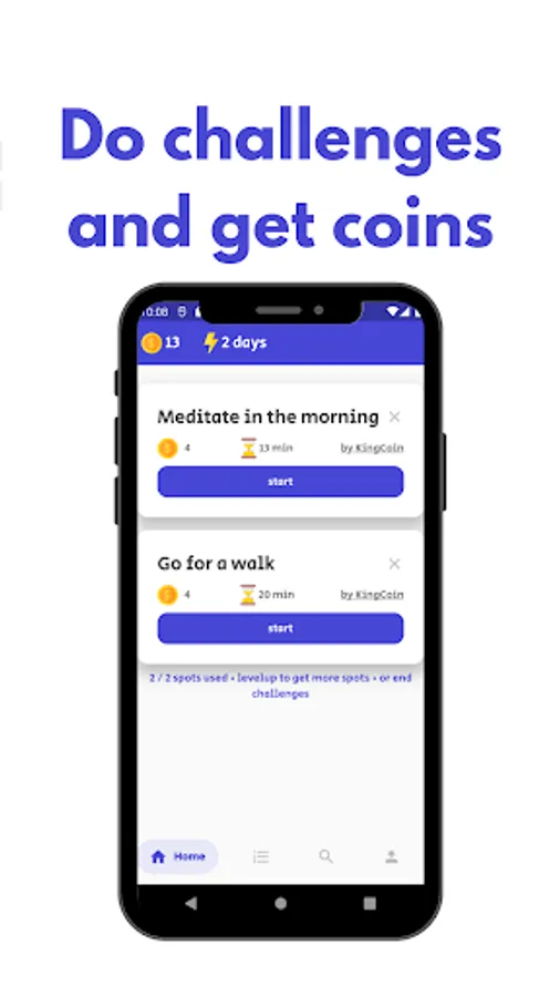 With moneta you can do self improvement Challenges and develop new habits and earn coins for doing them. You also get coins for "selling" challenges: You create challenges and are rewarded for every person that does it. You can furthermore act as a "police" and get coins for valid reports. Visit Users profiles and compete with them in the public Leaderboard.