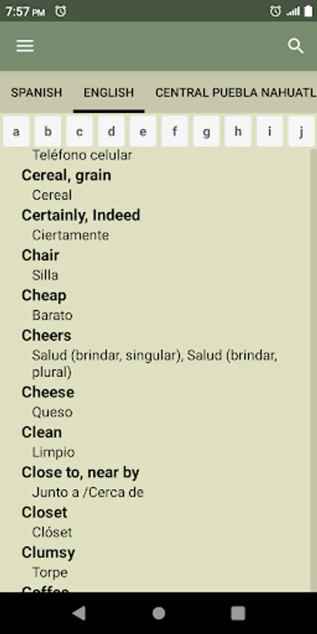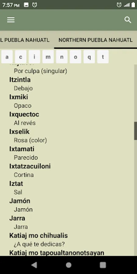 This is the prototype of a brief guide to everyday speech in Nahuatl, for its variants from the center of Puebla (ncx) and from the northeastern Sierra of Puebla (ncj), with their respective meaning in Spanish and English.