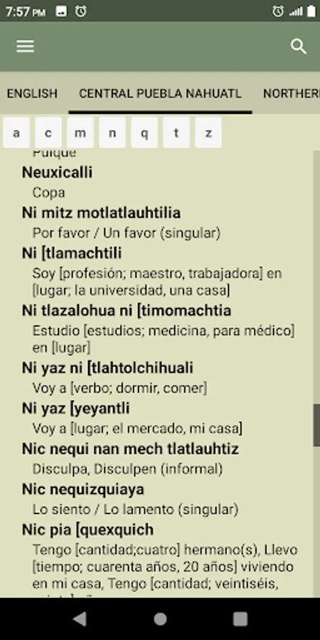 This is the prototype of a brief reference book for the everyday spoken Nahuatl language on two of its variants: Central Puebla Nahuatl (ncx) and Northern Puebla Nahuatl (ncj), including its proper translation in Spanish and English.