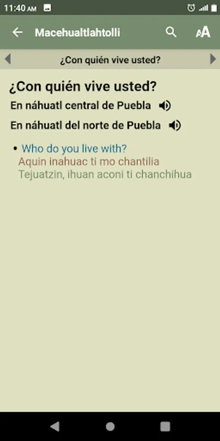 The Nahua collaborators José Genaro Emiliano Medina Ramos (ncx) and Estela López Teodoro (ncj) hold the respective authorship for the voice clips included. A brief summary of their biography and thinking can be consulted on the Nahuablante app.