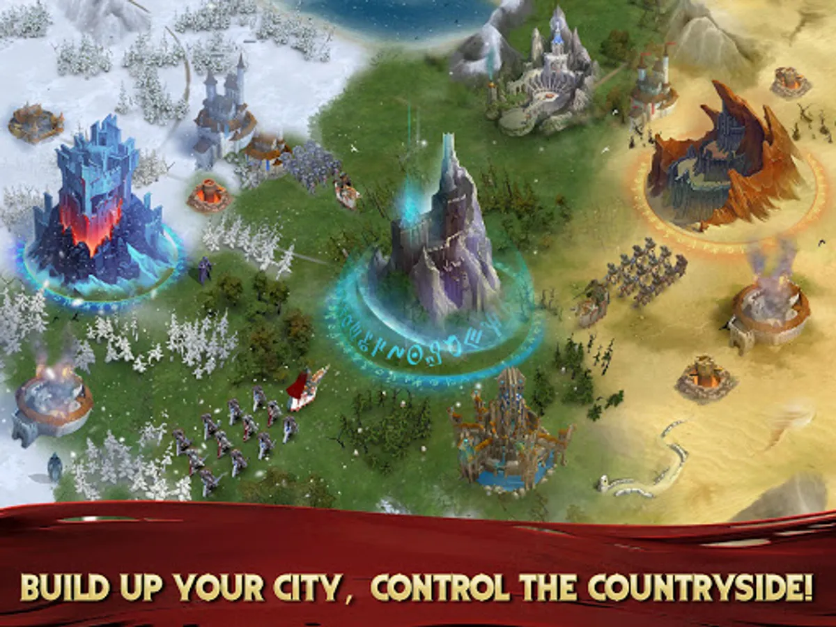 ● Summon mighty beasts to join your army. When your kingdom is under attack by horrible monsters, humans are useless against such a threat. Bolster your squads with glorious and strong beast reinforcements that can replace 10,000 solders: terrifying trolls, fire dragons, dangerous yetis, or noble gryphons.