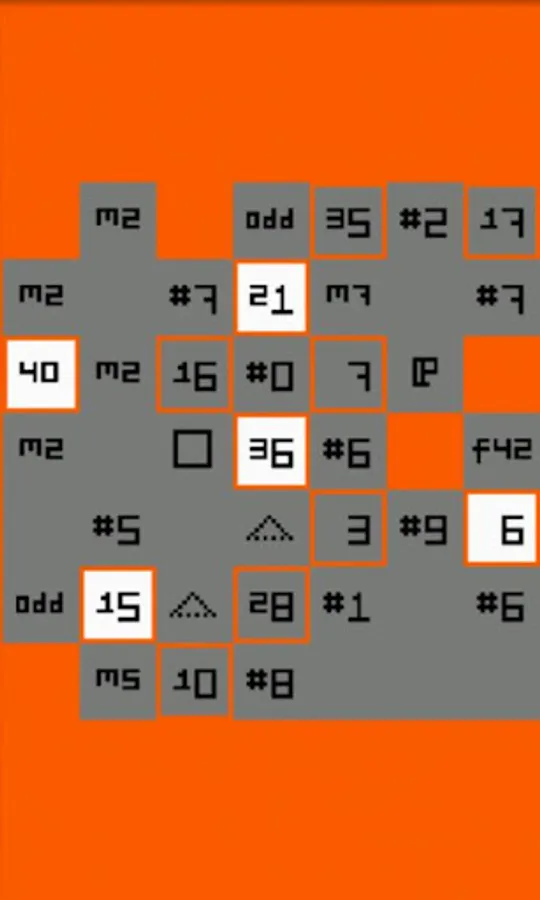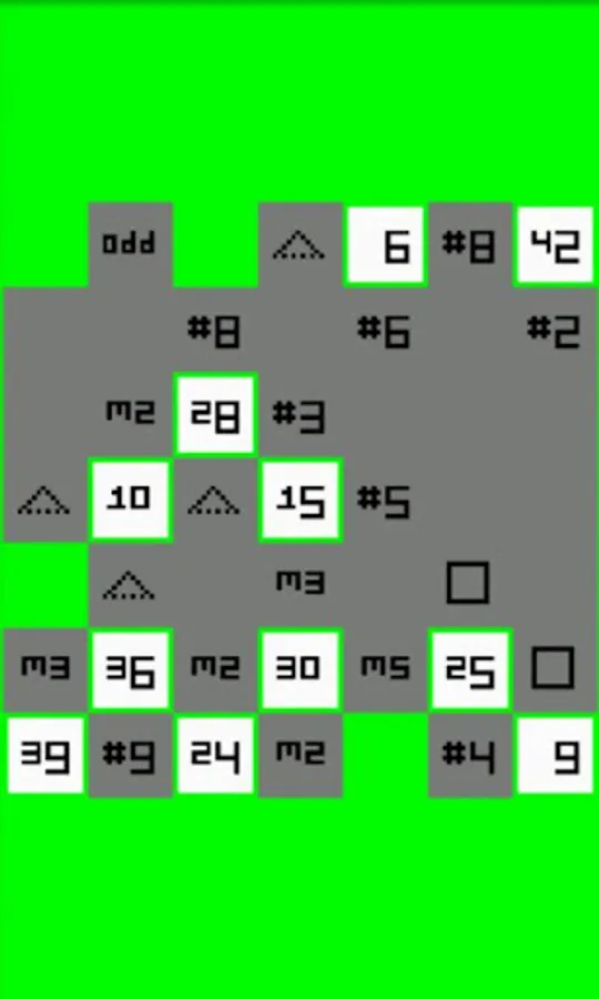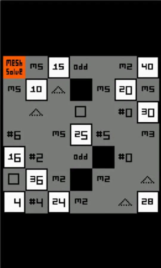 features a "simplify" button that activates after 20 seconds of touch screen inactivity; player can then choose to either continue manipulating tiles in order to solve the mesh, or "simplify" the puzzle (one tile at a time) by repeatedly pressing the "simplify" button as required; note that "auto-solving" a mesh will signal an amber background as opposed to green.