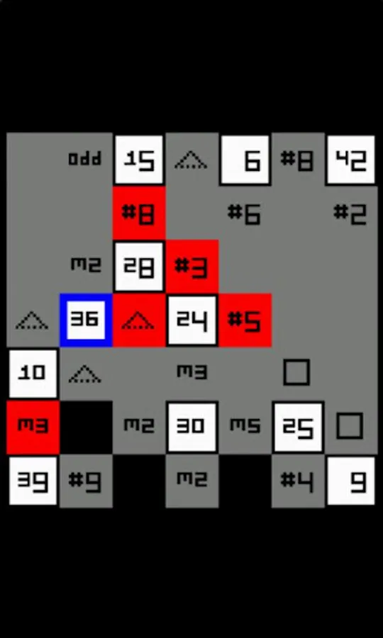 * additionally, "#0" to "#9" represent "checksum" constraints, such that any adjacent numbers, when added together, must result in a "units" digit equal to the checksum (i.e. given "#6", 4 + 13 + 9 is ok, but 22 + 3 + 36 + 11 is not, since resultant "units" digit is 2).