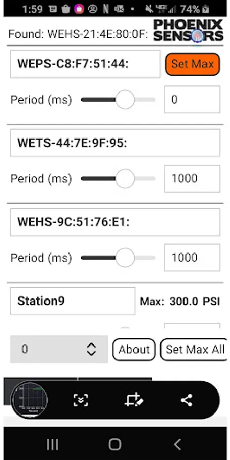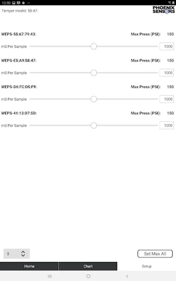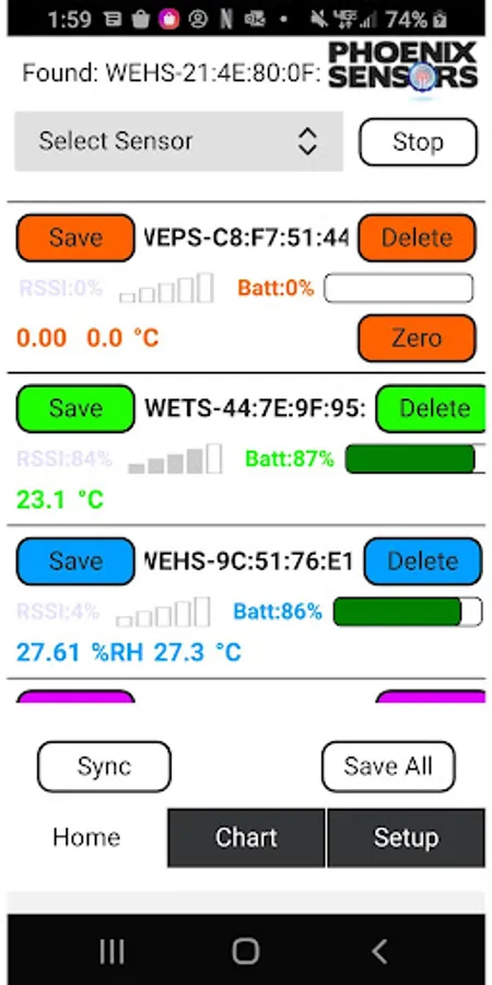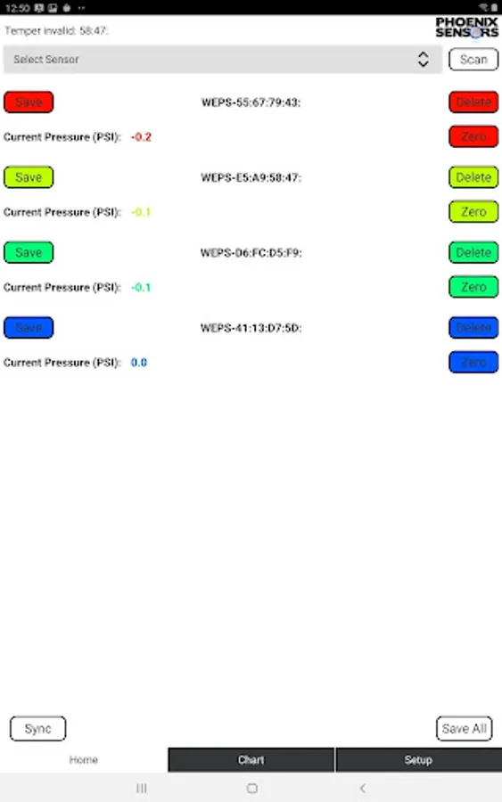Setup, view and save data, from Phoenix Sensors BLE sensors.