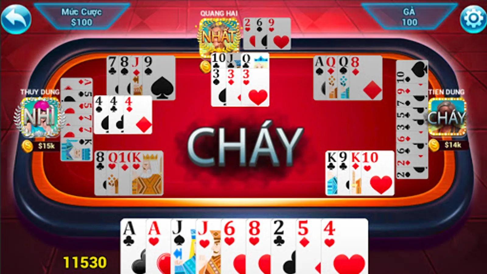 Phom (Ta La) is a card game for 4 players. Total Posts 52 cards, each one dressed originally split 9 or 10 plants. the remaining cards are placed in the middle of loading for the players to play the next time. The first riders will be divided into more than one card than others.