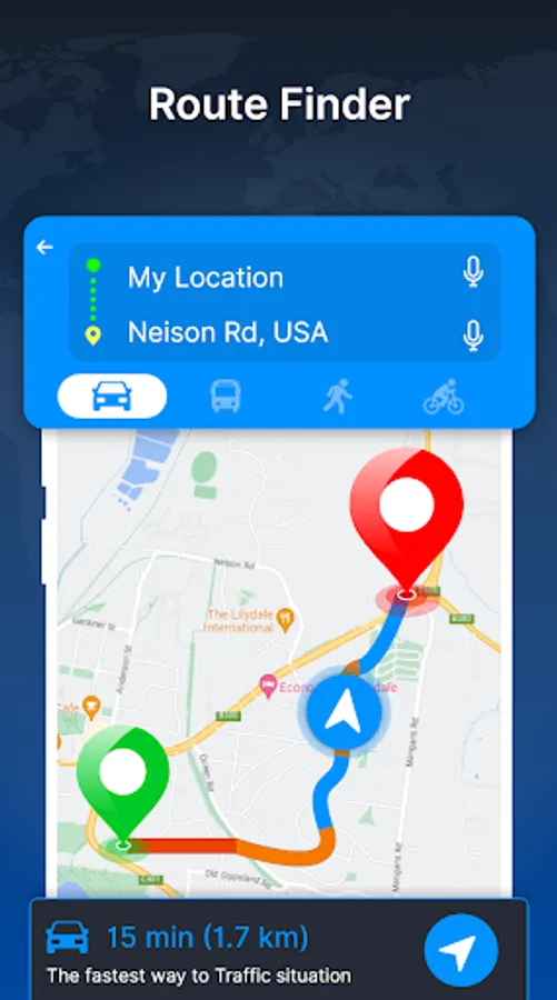 Traffic Map: Plan your destination navigation with live traffic alert.