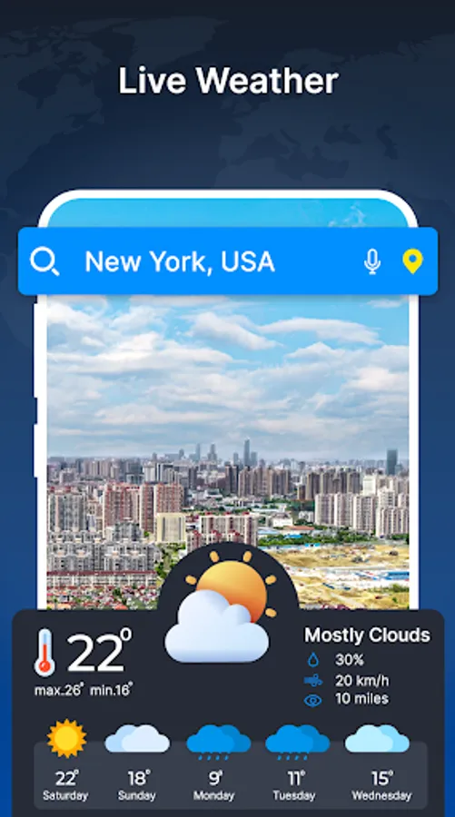 Weather: Find current city climate report and get complete weather updates of the target location.