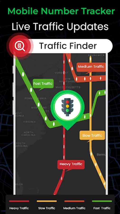 Traffic Finder: Live mobile number tracker phone locator GPS navigation traffic Finder helps you to find the distance and plan your destination navigation with live traffic alert and travel time between start and end point. Our Mobile Tracker Map Location live traffic service finds faster routes and avoids traffic jams.