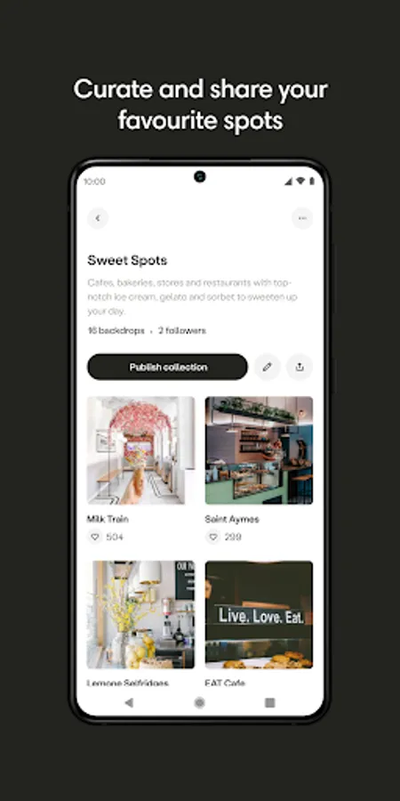 Backdrop helps you find & share beautiful places, whether it's a cosy coffee shop a few miles away or a breathtaking lake halfway around the world.