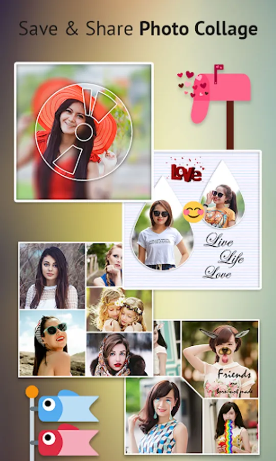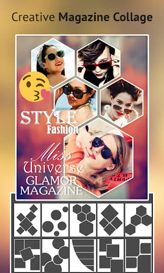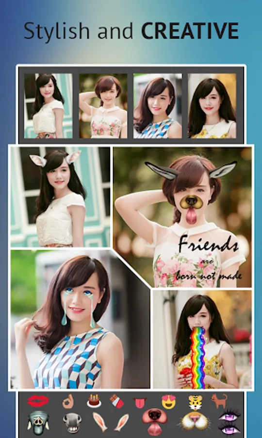 Grid Filter Collage only lets you photo collage multiple photos with myriad layout frames and photo grids. It can also add emoticons to your photos with emojis and popular tags.