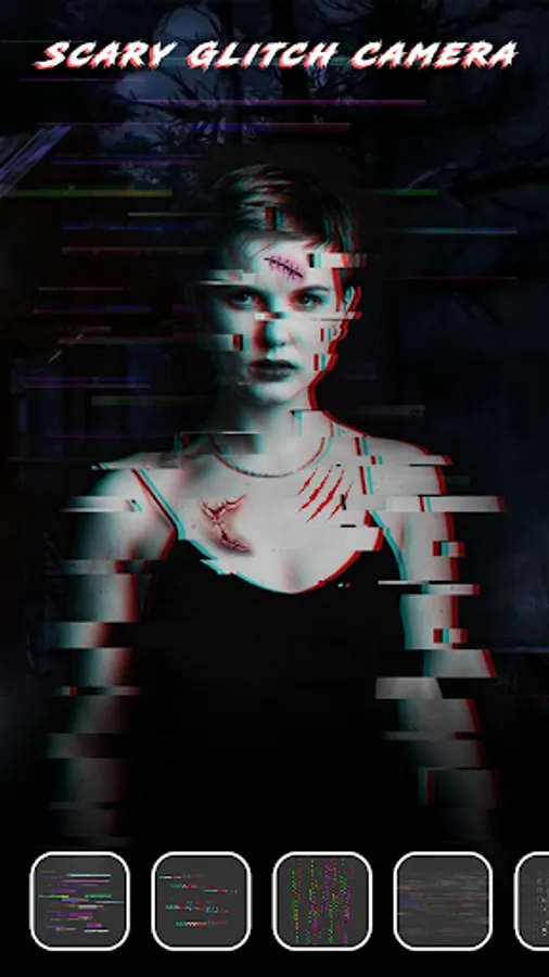 -take a selfie or choose a photo from your gallery, and start adding glitch stickers and horror effects.
