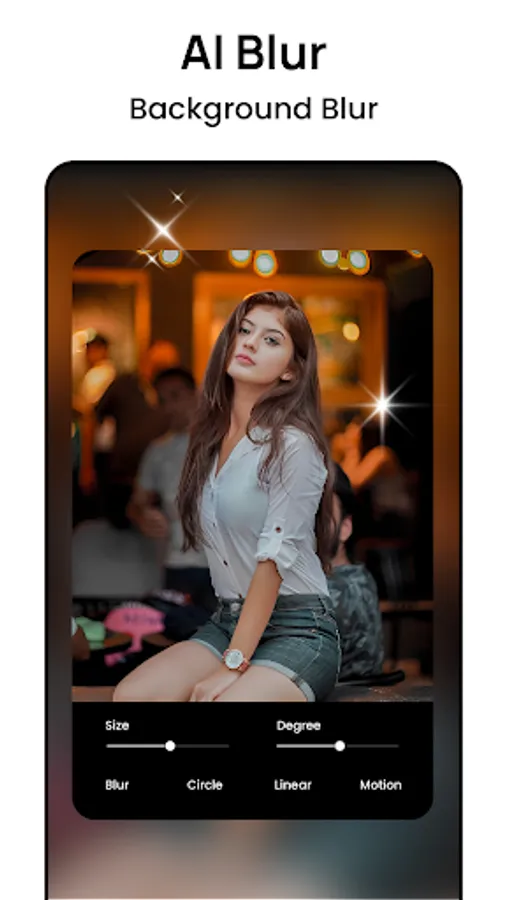 Background: HD photo background editor changes the background or edits new shapes e.g. spiral, shaped, frames, wings, and erase.