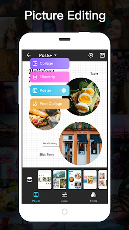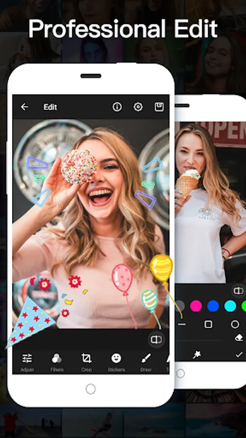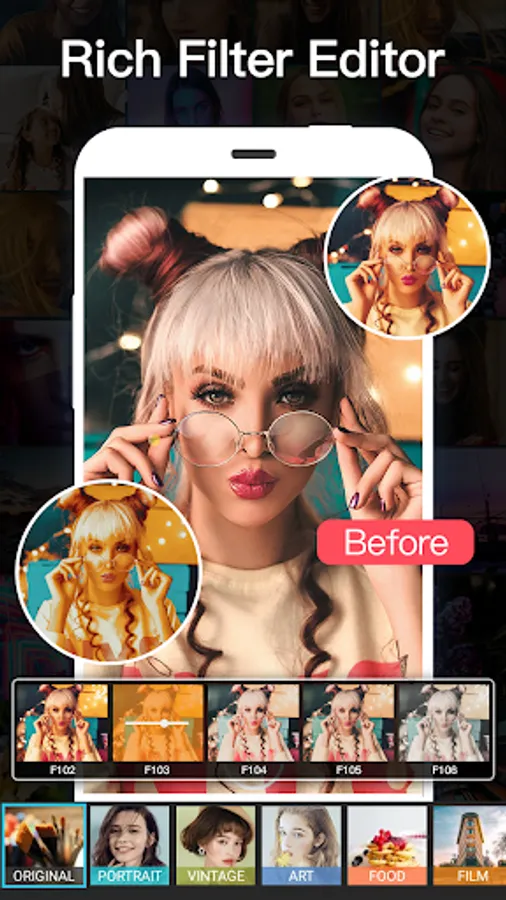 HD Camera - BeautyUp Camera is designed to take stunning photos easily. It is free to use! Shooting selfies with numerous filters, change effects as you like. With the built-in photo editor and photo collage, you can improve your photos to a higher level by using practical functions, such as filters, adjustments, layouts and backgrounds.