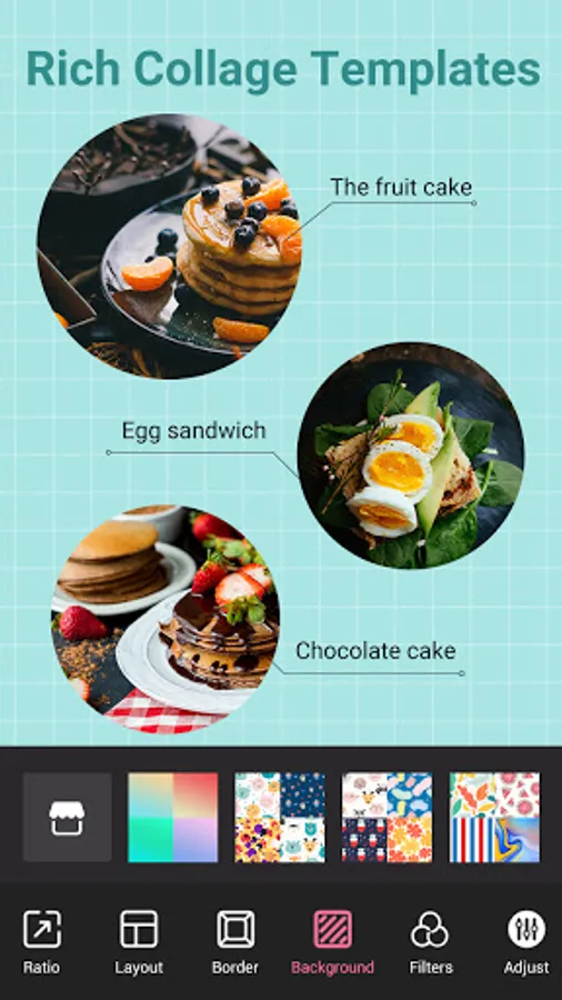 * You can pick the favorite photo grid, edit collage with filters, background, stickers, text, etc.
