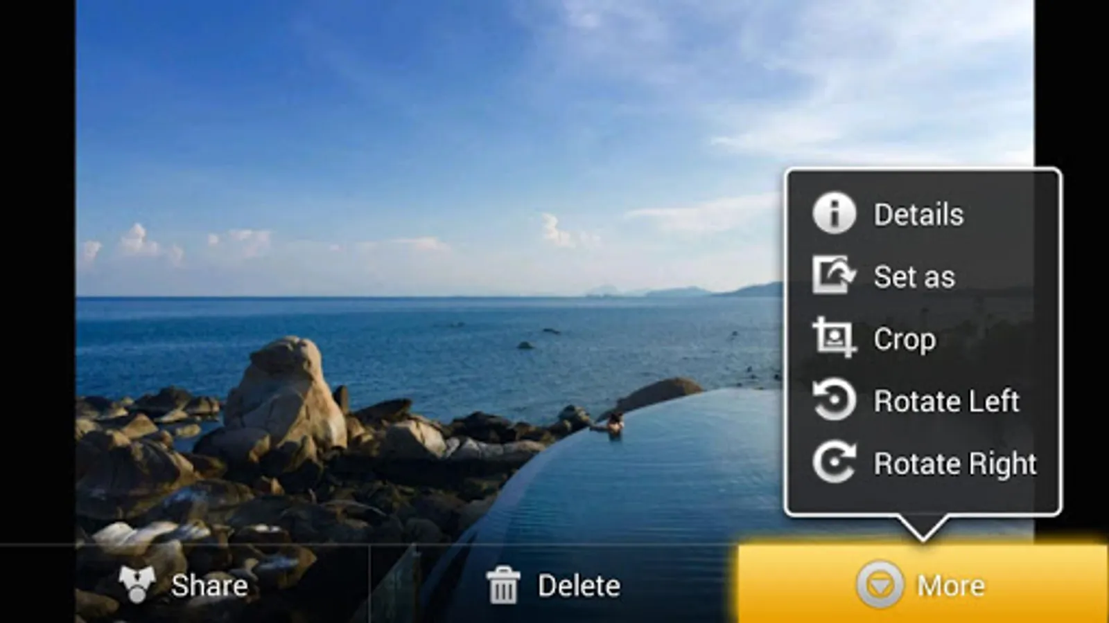-Edit your photos: rotate right, rotate left, create folders, hide photos/albums, set your favorite album