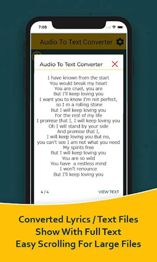 Easily convert text from audio files with "Audio To Text Converter - Instant Lyrics From Song" application.