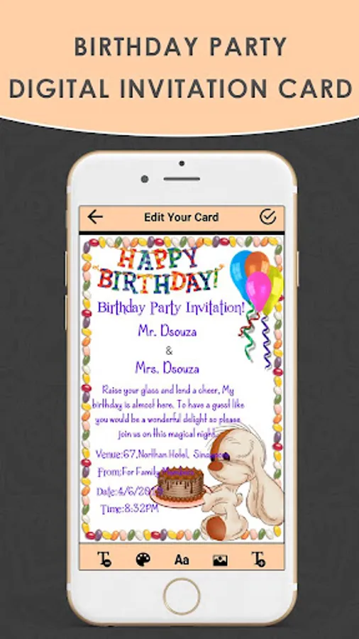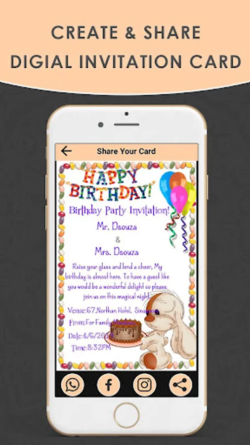 Now you can send a Digital Invitation Cards for all occasions and make someone's day special with personalized card maker application.