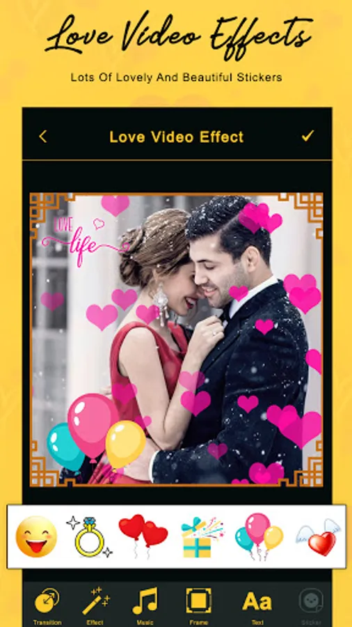 Love video effects comes with lots of brand new heart & love animated effects with various categories that you want to apply on photos & videos.