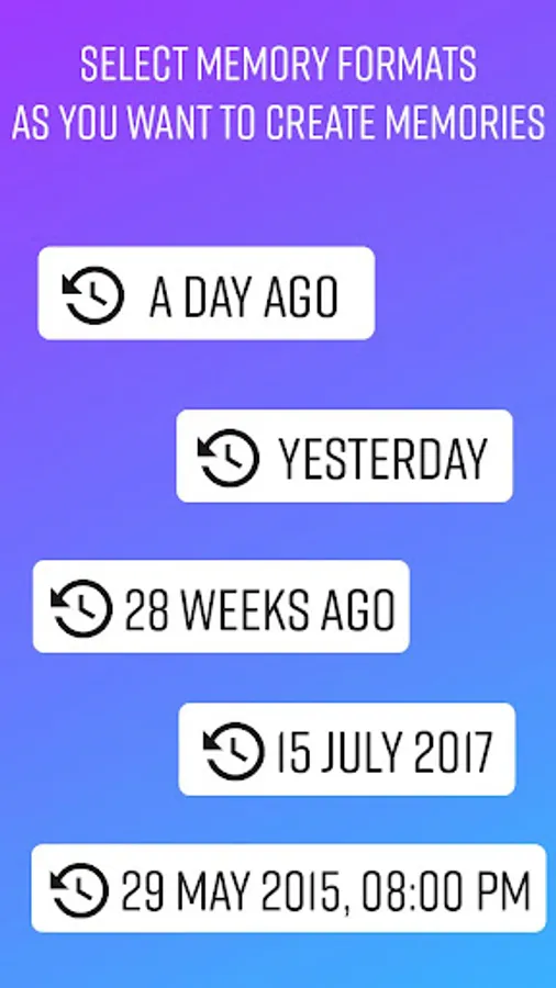 Memories helps to add beautiful tags on your photos like " Today ", " Day ", " Week ", " Months ", " Year ", " Custom " &