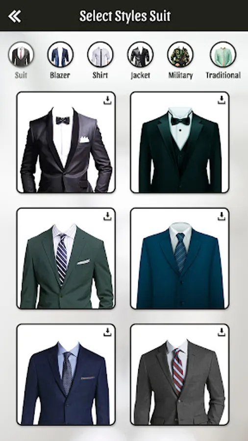 A large & latest collection of man suit with lots of categories to choose & apply on your face with smart photo editing tool.
