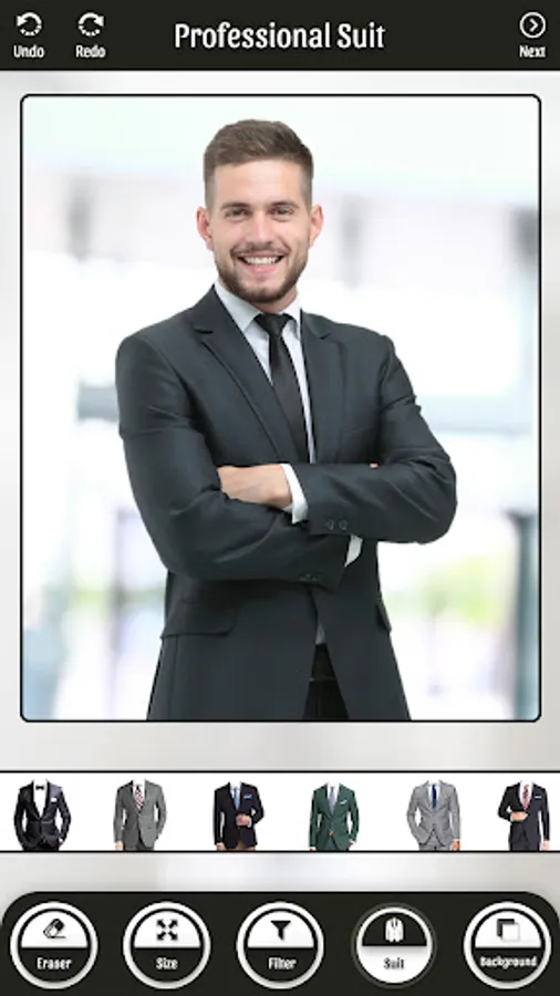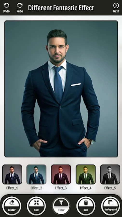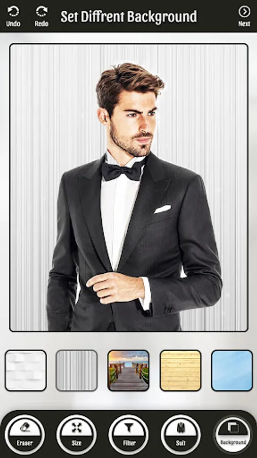 Photo Suite Editor helps to apply best man suit which id more comfortable for your face.