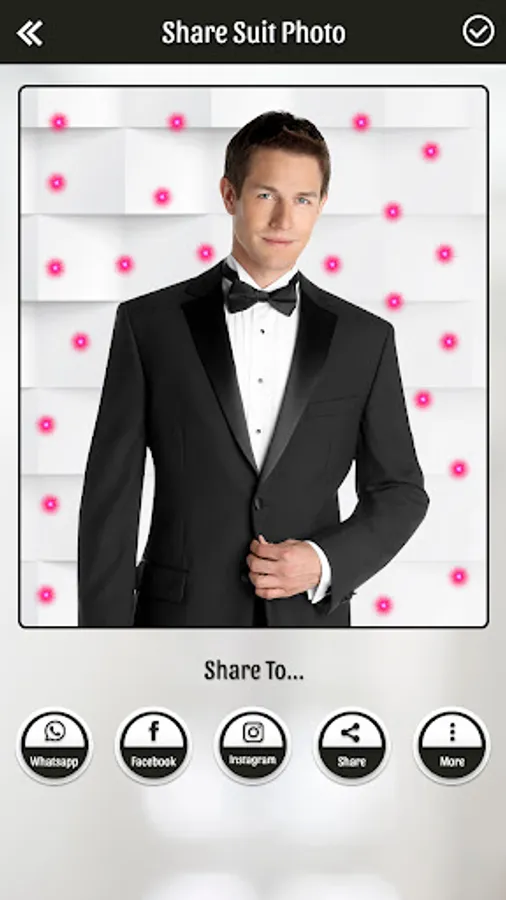 Just select your favorite suit & apply on your photo with easy adjustment.