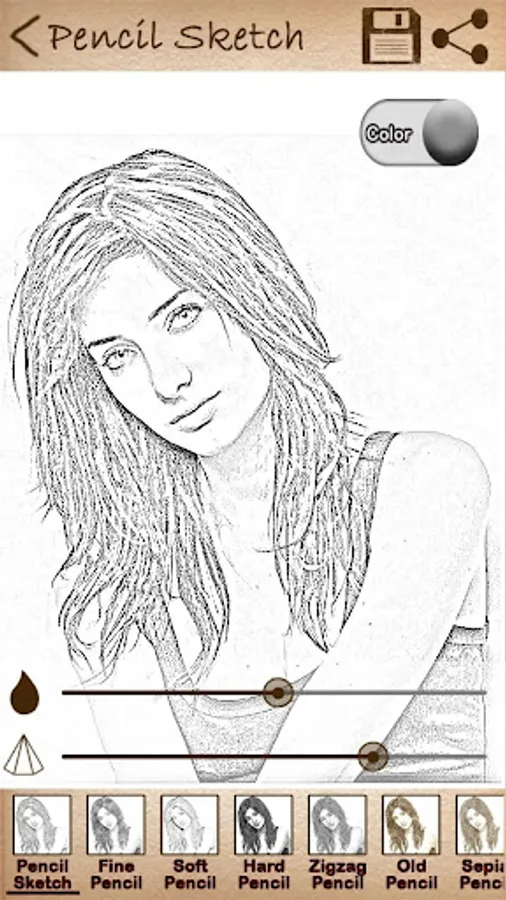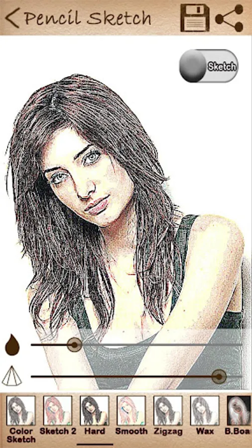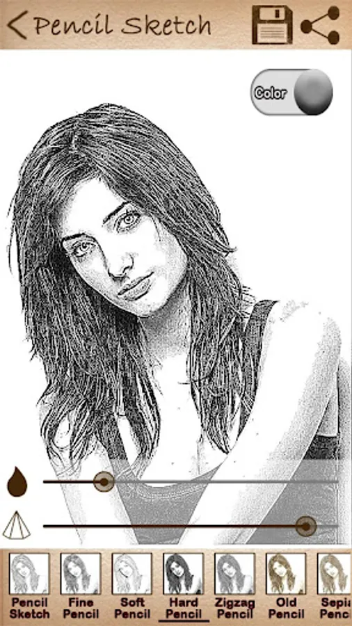 Like, Pencil Sketch : Soft Pencil, Hard Pencil, Zig Zag, Old Pencil Effect, Sepia Pencil,