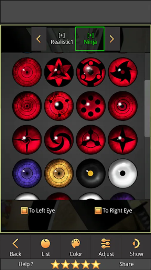 ✔ Collection of Sharingan, Rinnegan.