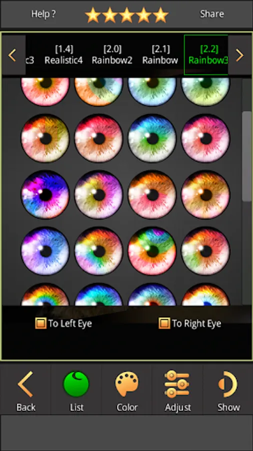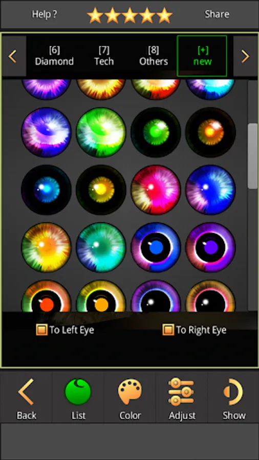 ✔ Create your own eye color from photo gallery