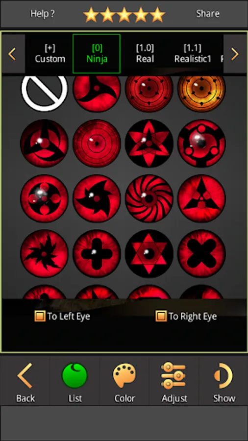 ✔ Sharingan, Rinnegan and Anime Eyes.