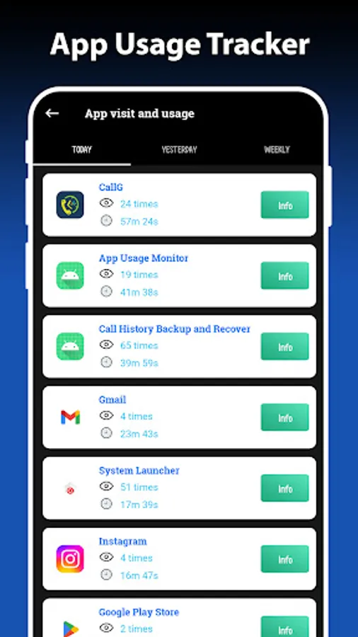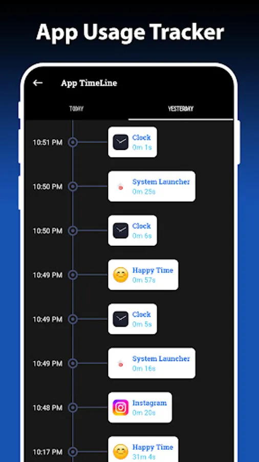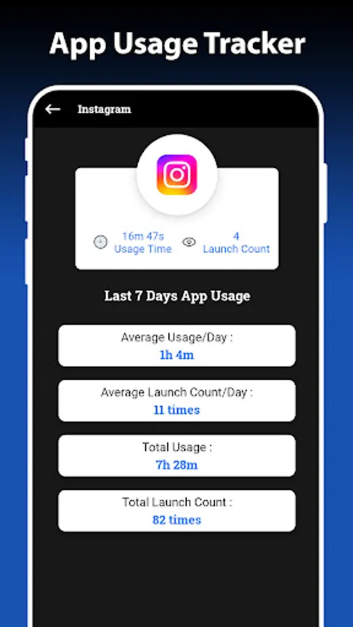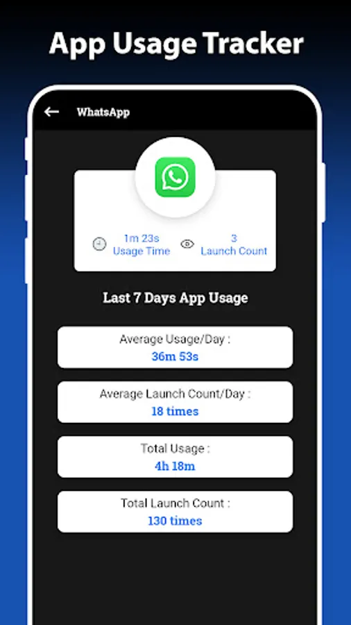 * Track total time spent on your smartphone include app usage detail, incoming notifications and unlocks.