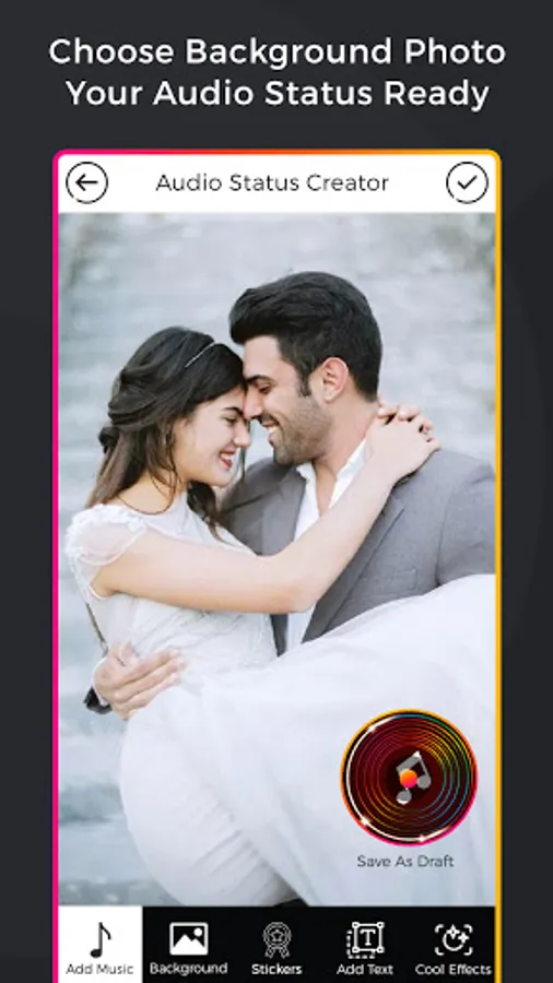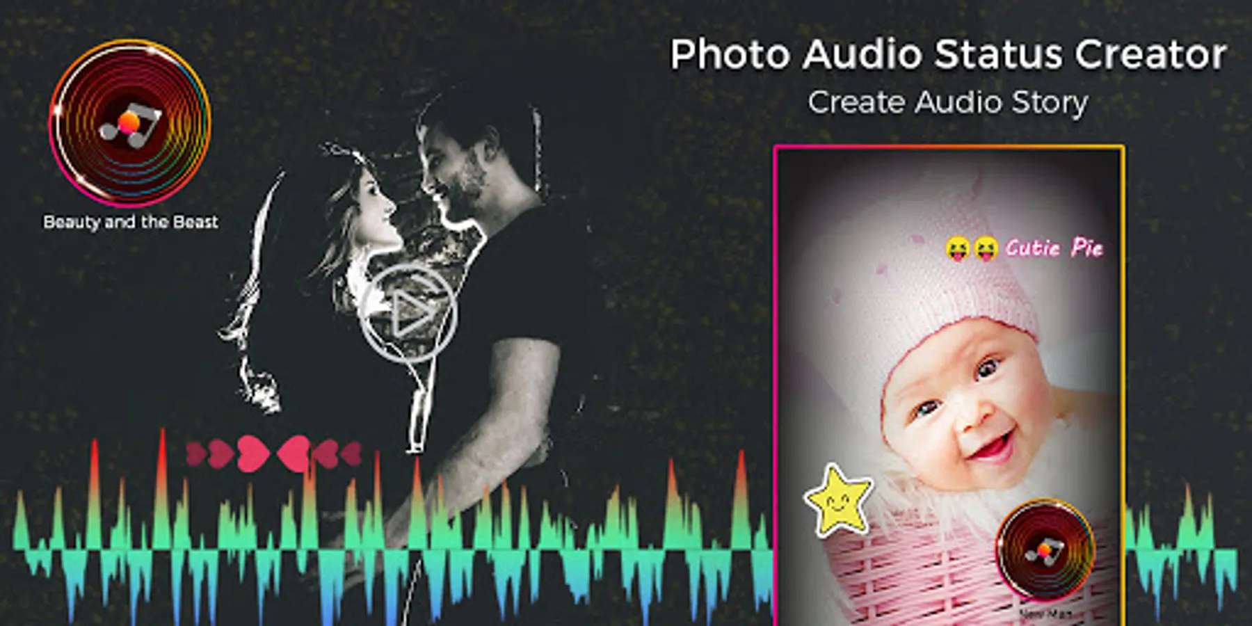 Audio Story & Status Maker application helps to select your song adding on your own photo or backgrounds to create audio status into a story.