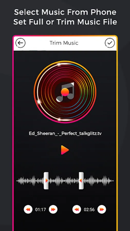 Select your song from your phone storage with trimmer & apply favourite part on photo.