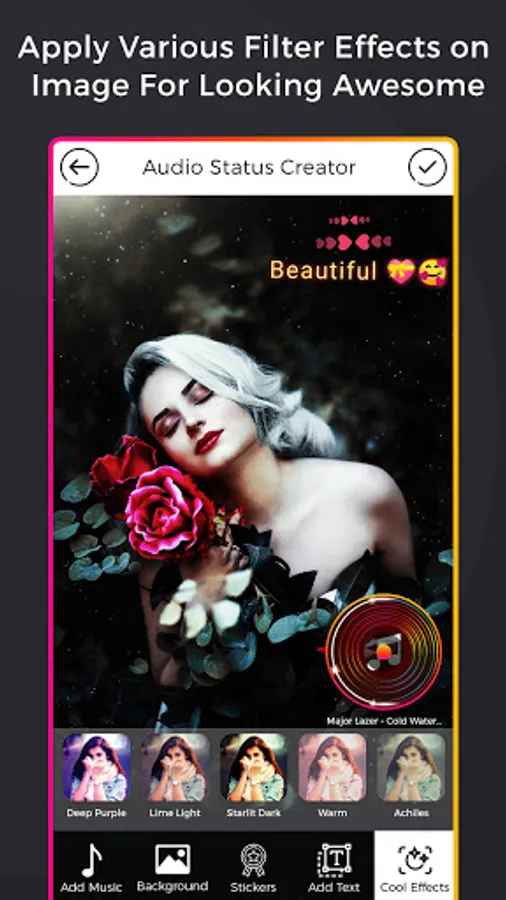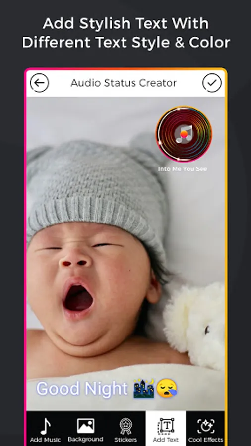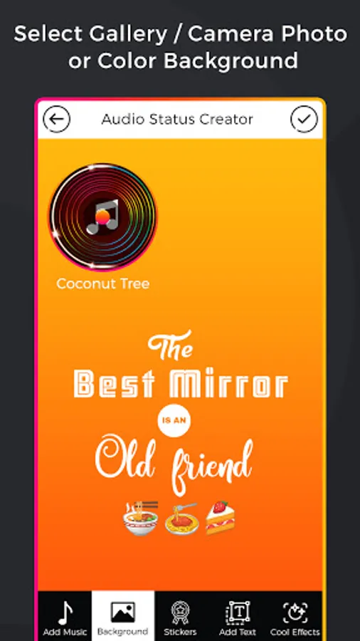Add your own photo with colourful backgrounds & apply musical tag on your photos.
