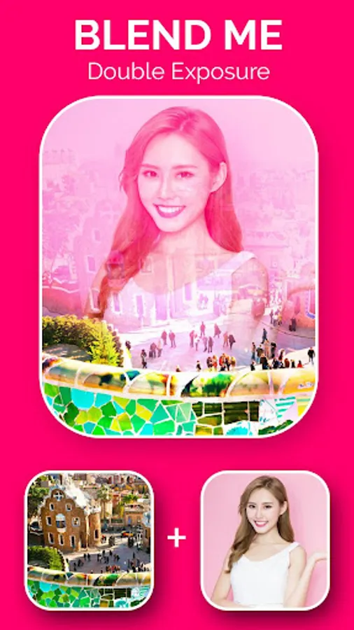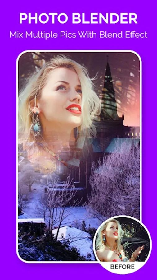 C) Also, it gives wide range of blending Effect. best available theme, and you are done with awesome photo blender image. Create Blend Collages with Amazing Pic Merger App Pictures on Nature Photo Backgrounds and Innovative Photo Backgrounds with wide variety of backgrounds to choose from for Collage Background. Blend Me - Double Exposure provides a simplest and easiest way to blend two or more pictures together with advance photo editing and enhancement options. Manually process the details of the picture, let you enjoy the fun of editing pictures, instantly transforming the photo processing to reach people without huge software.
