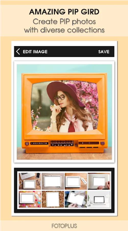 - Launch FotoPlus Collage app, then tap photo editor, Frame , backgrounds or Photo Effects...