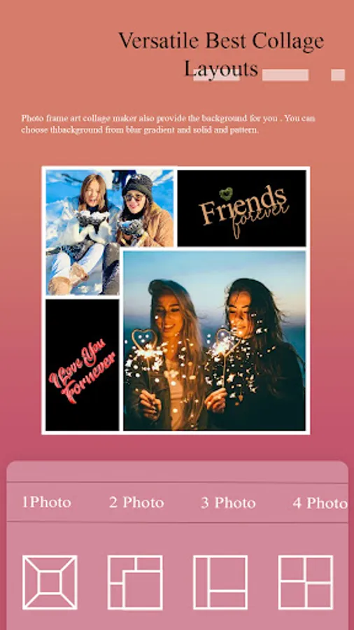 Photo Collage Editor is an awesome picture editor and collage making app for your selfies. Offers many templates, photo grid collage and border for your lovely selfies. Add cute picture stickers to have funny collages.
