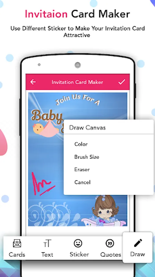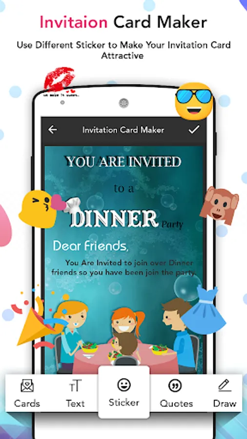 Invitation Card Maker will help you until you have the final product in front of you. Show your creativity to